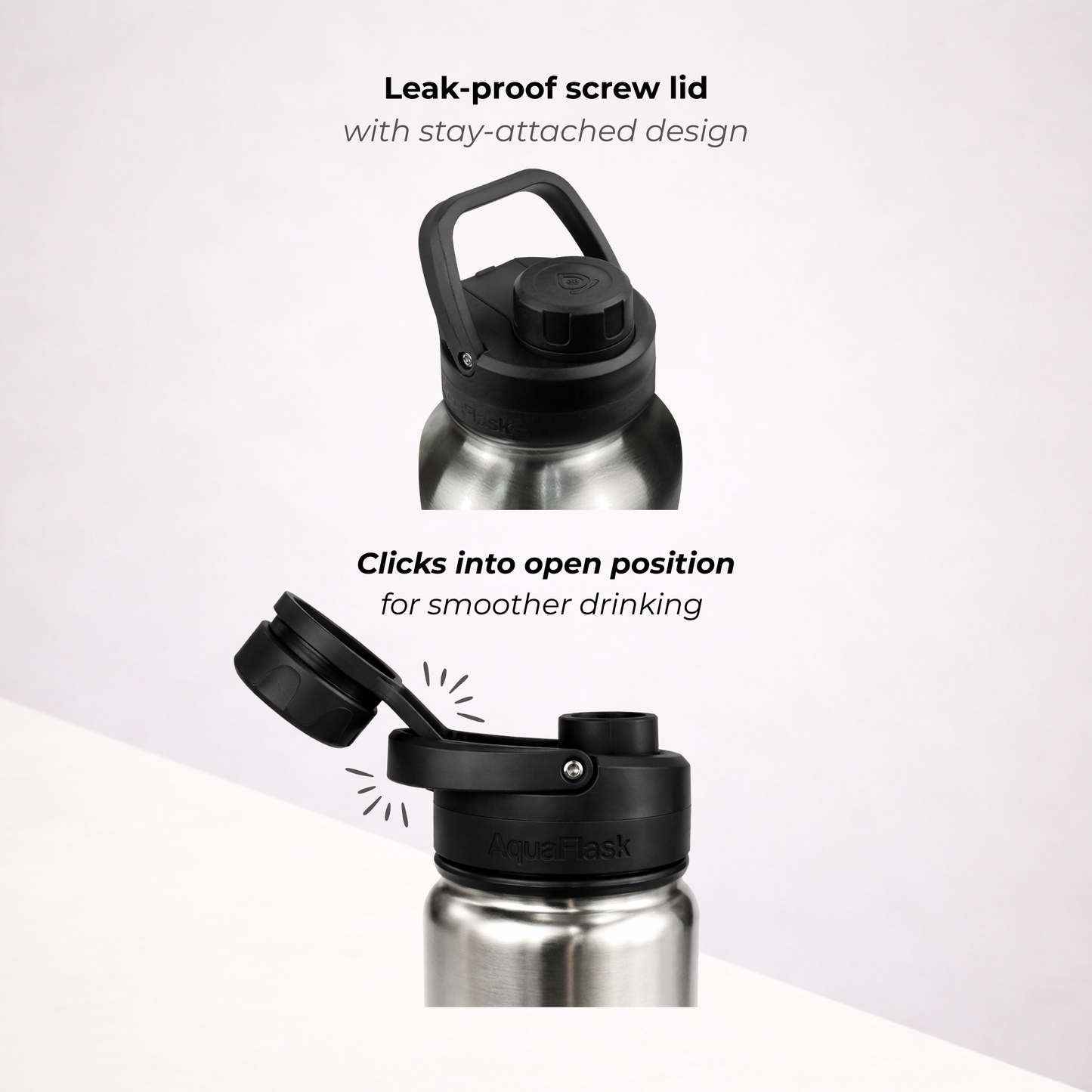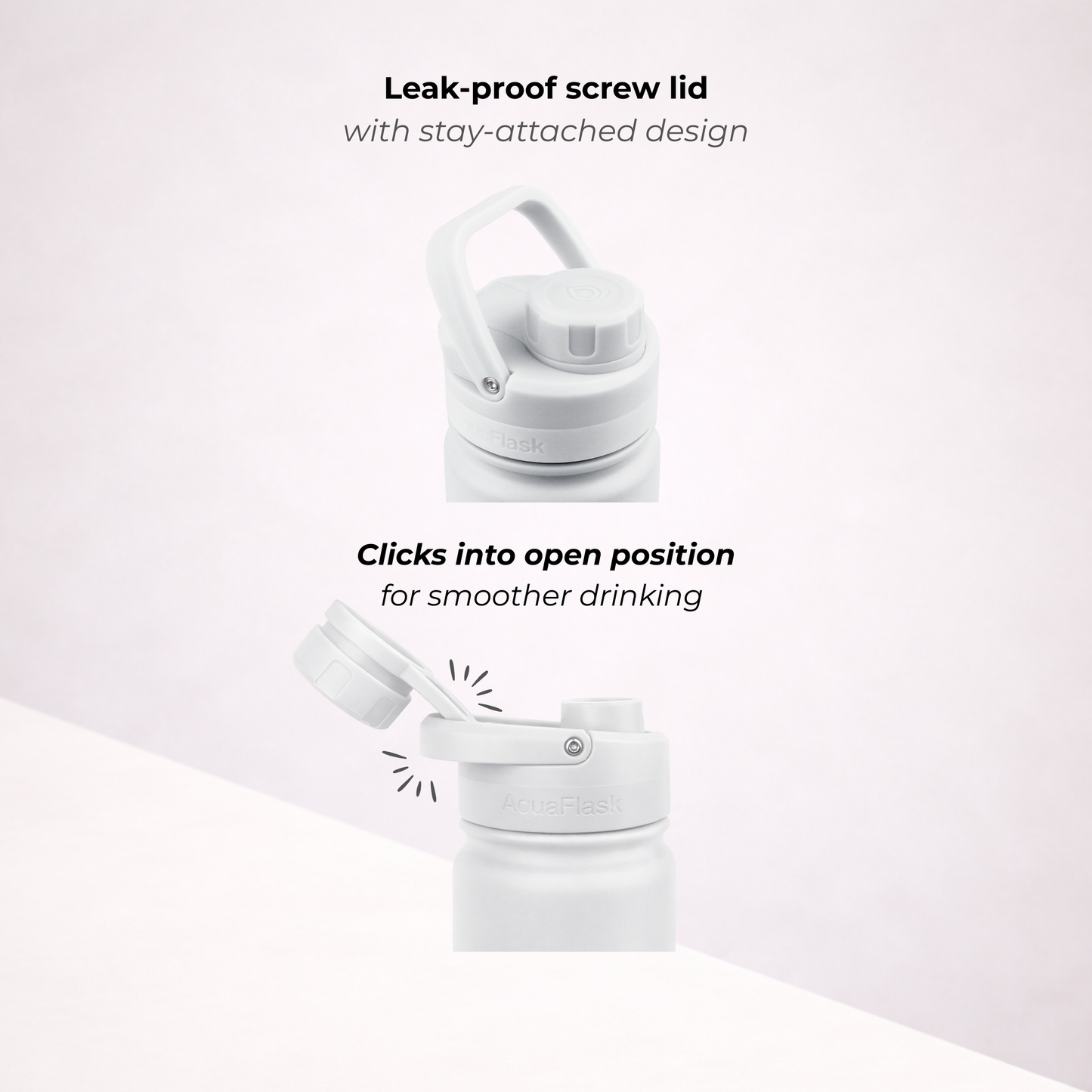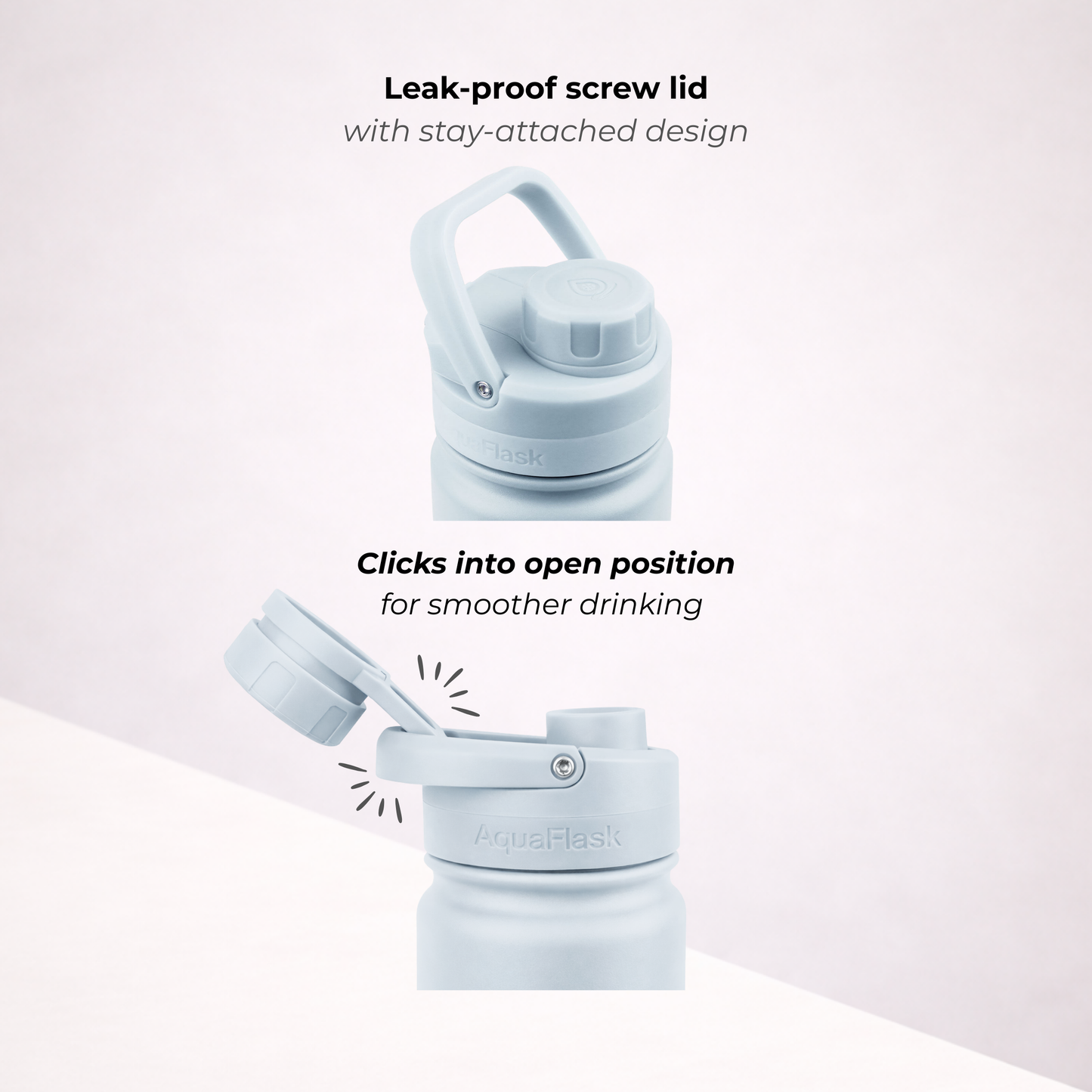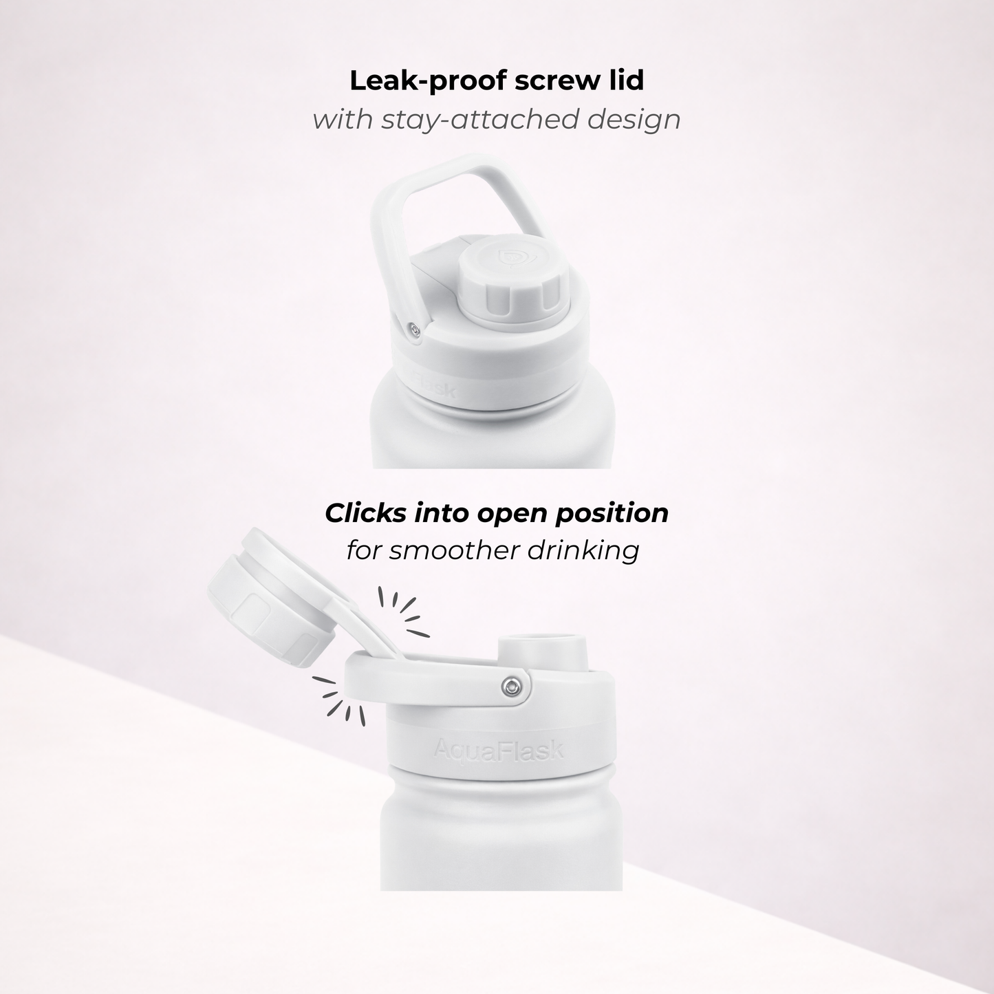 A bit of condensation around the lid is completely normal. It happens because the lid is made from thermoplastic, which isn’t insulated like the bottle itself. Don’t worry – it doesn’t affect the temperature of your drink whether it's hot or cold.