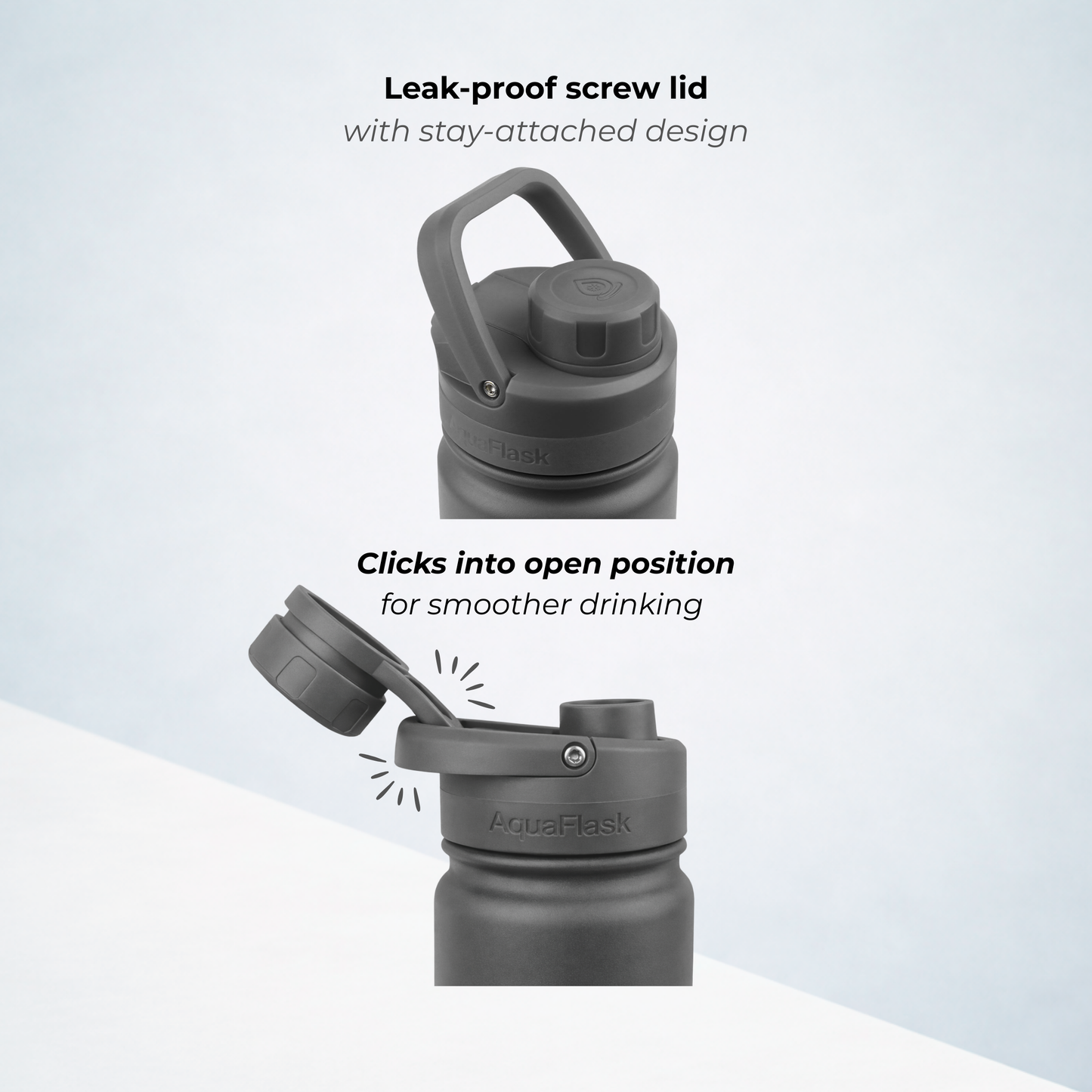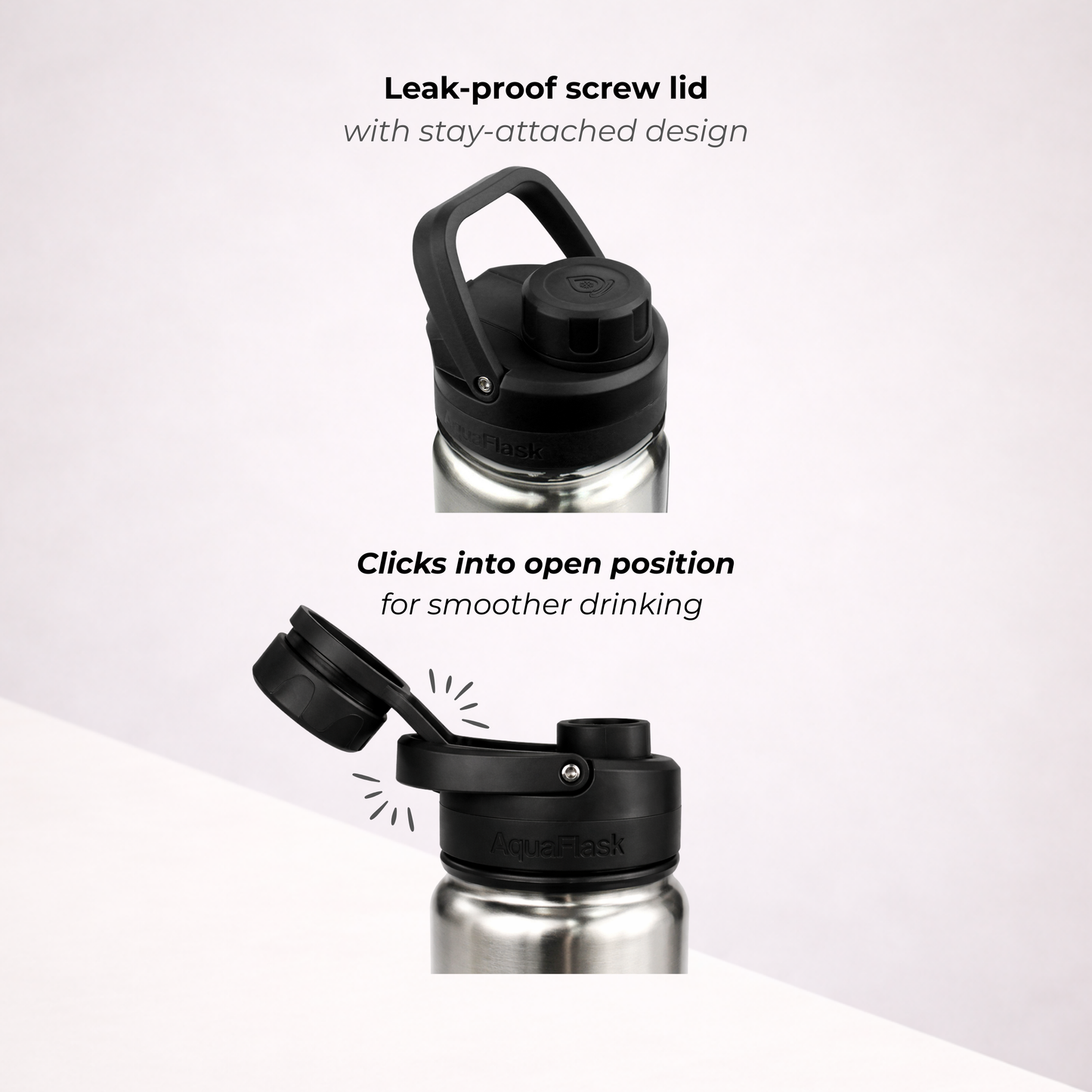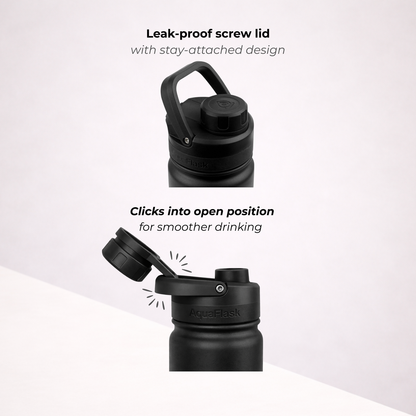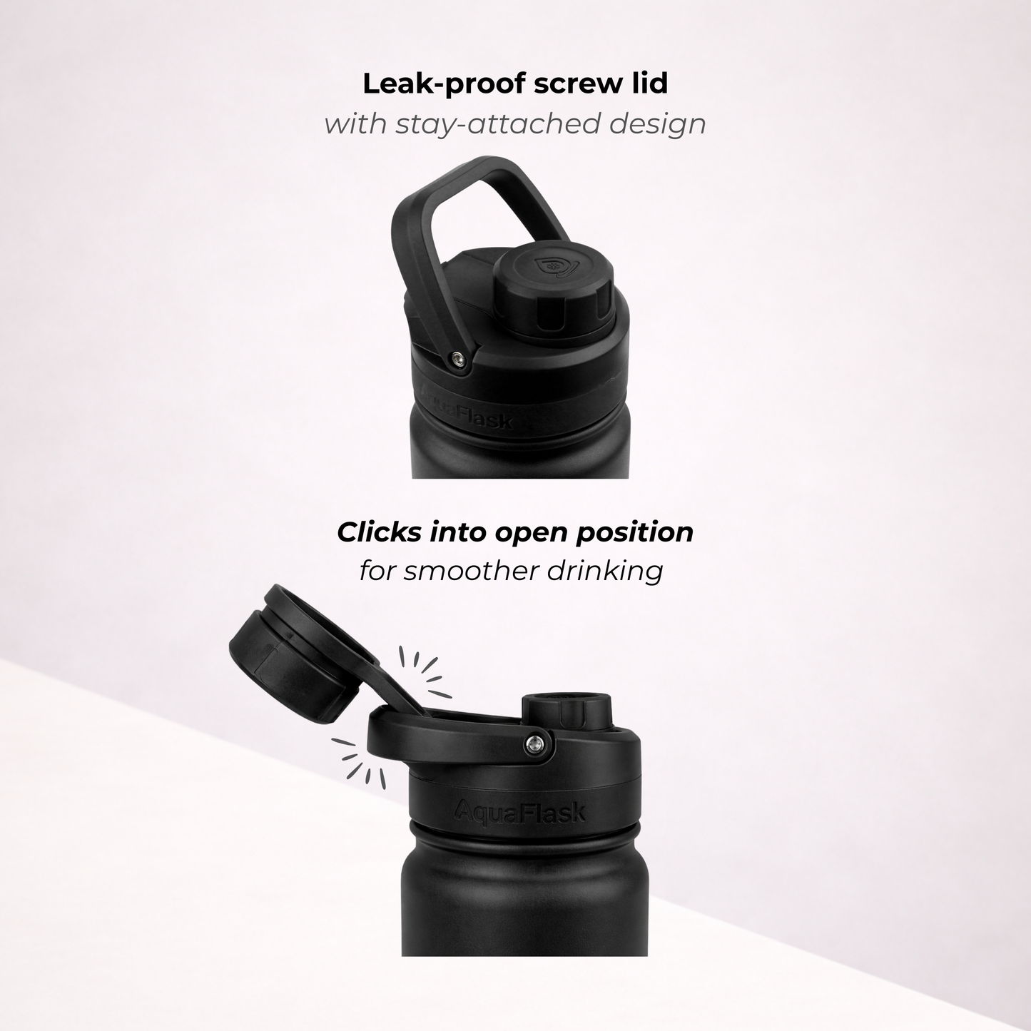 A bit of condensation around the lid is completely normal. It happens because the lid is made from thermoplastic, which isn’t insulated like the bottle itself. Don’t worry – it doesn’t affect the temperature of your drink whether it's hot or cold.