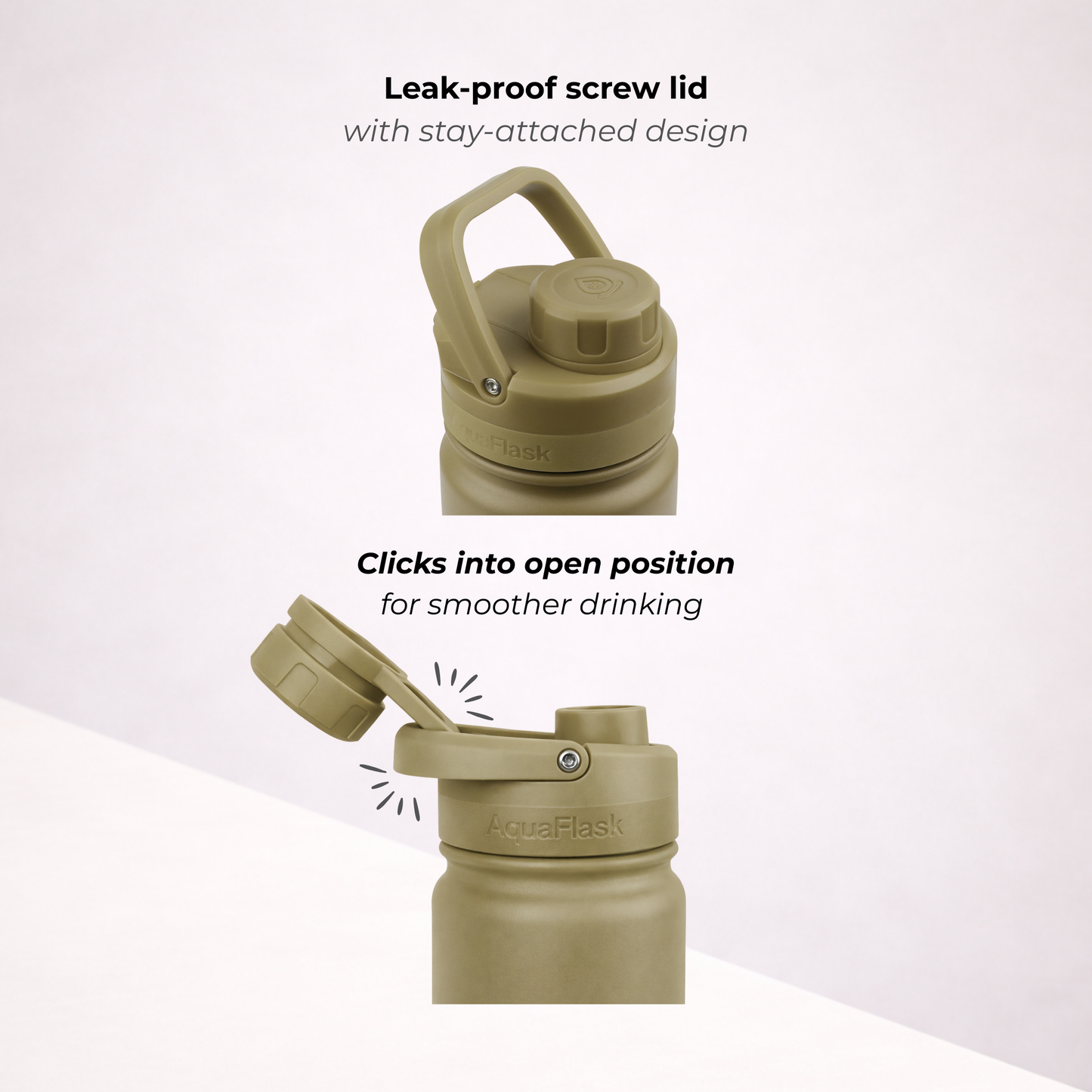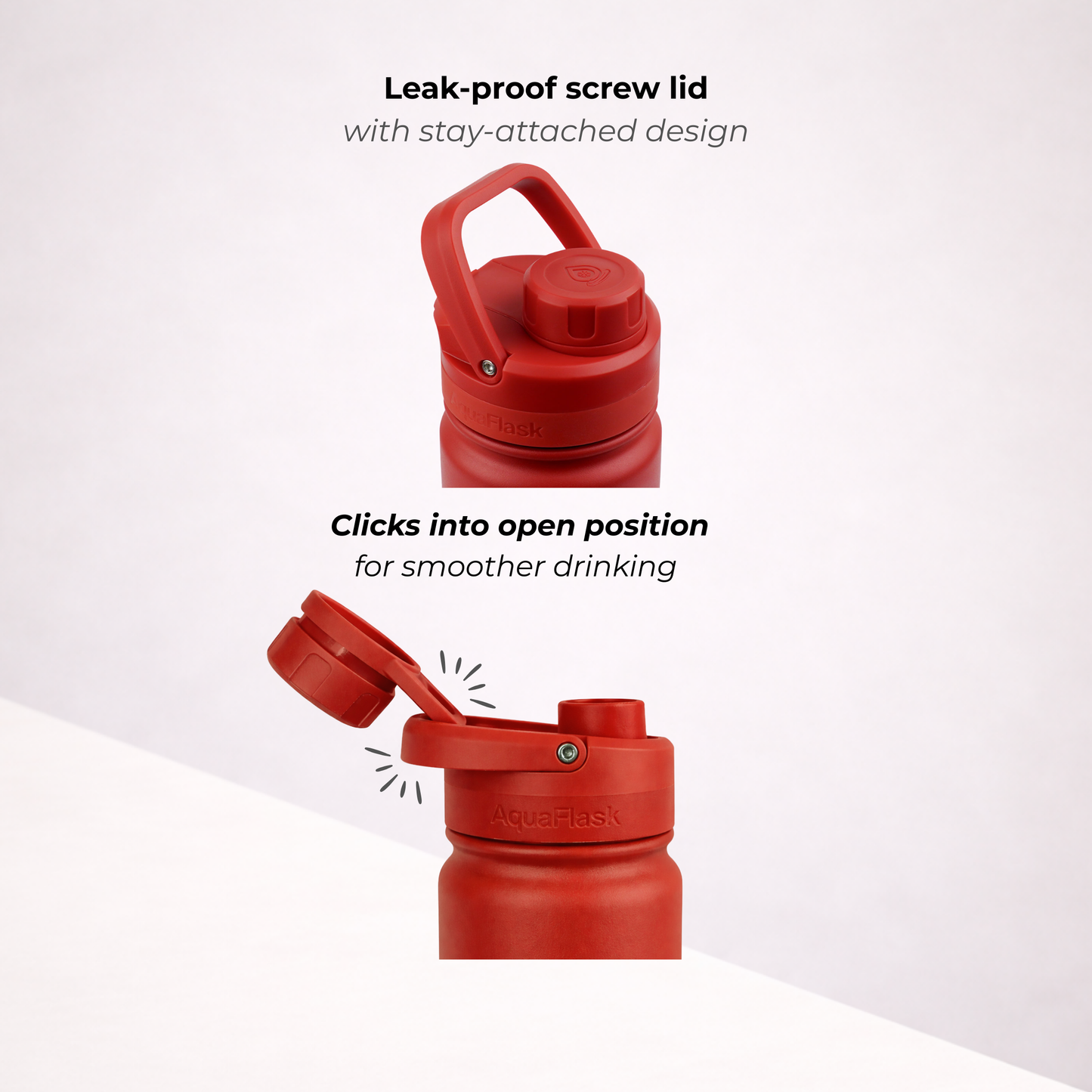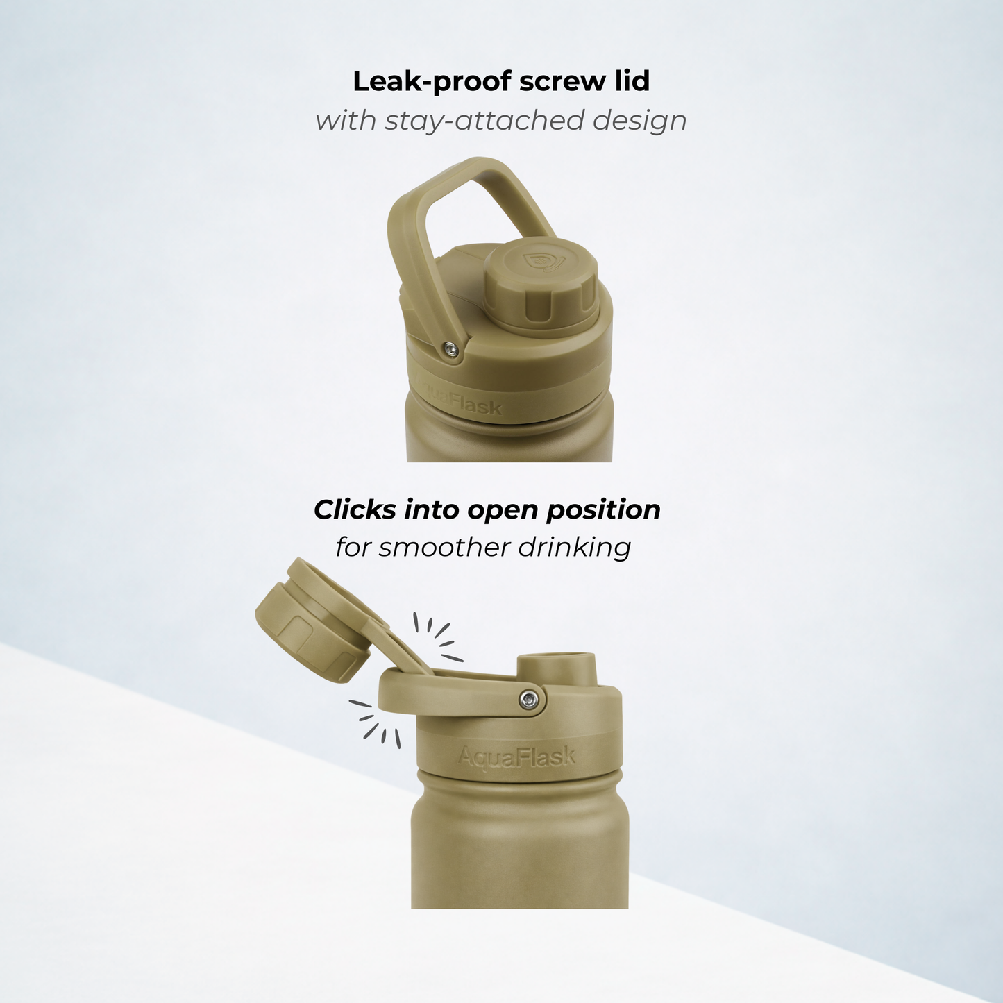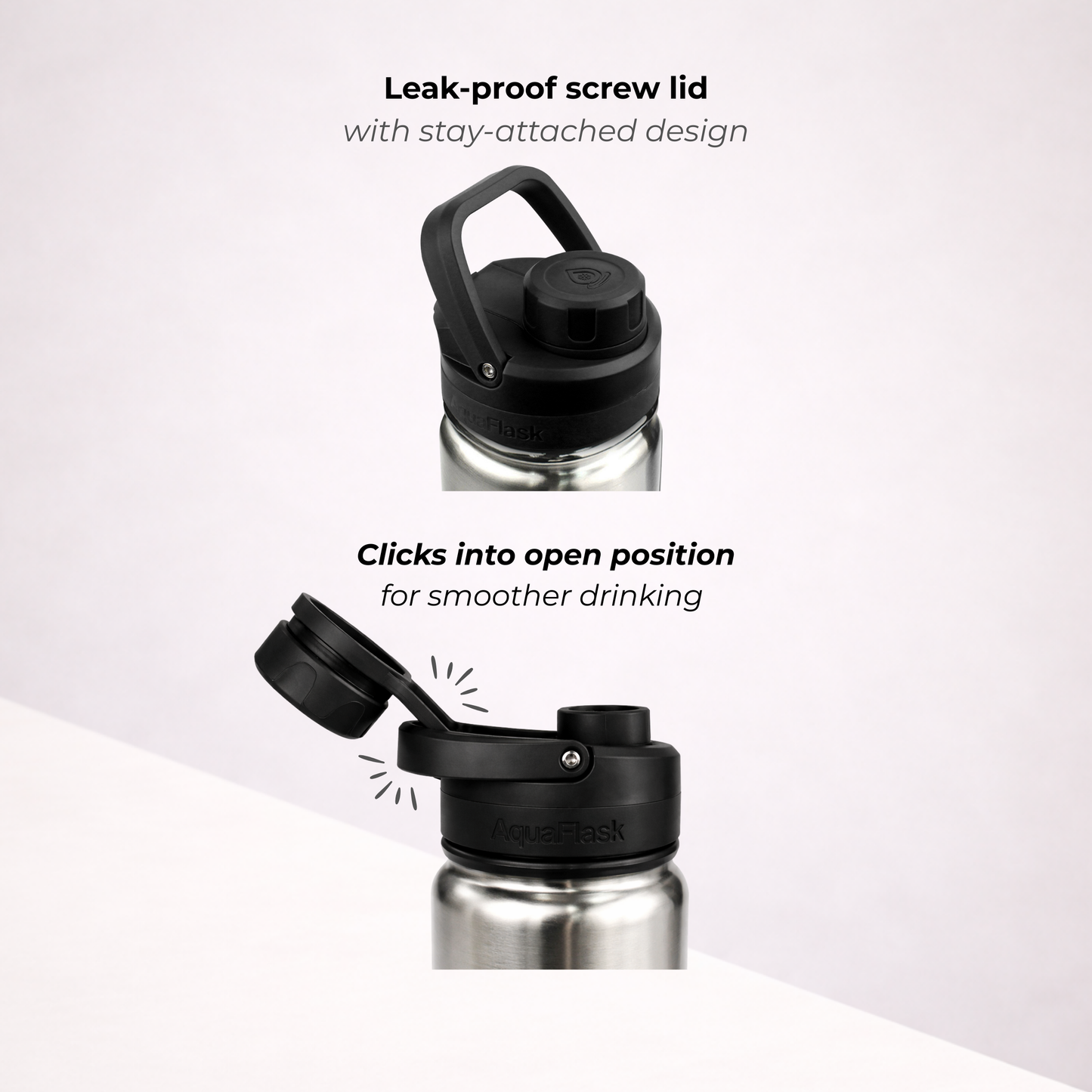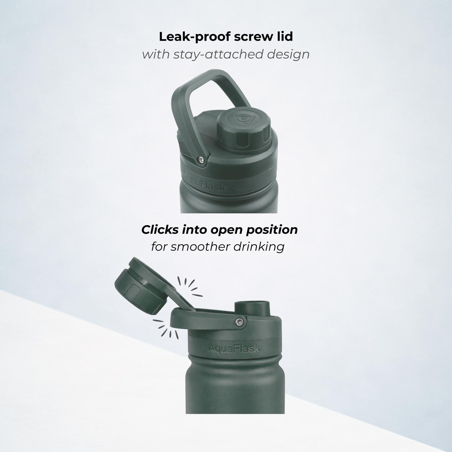 A bit of condensation around the lid is completely normal. It happens because the lid is made from thermoplastic, which isn’t insulated like the bottle itself. Don’t worry – it doesn’t affect the temperature of your drink whether it's hot or cold.