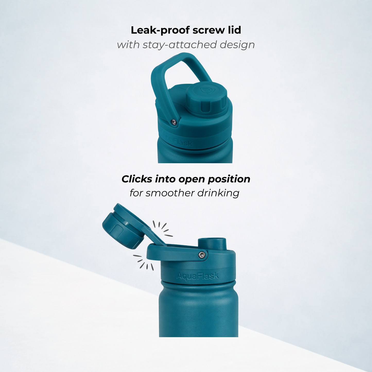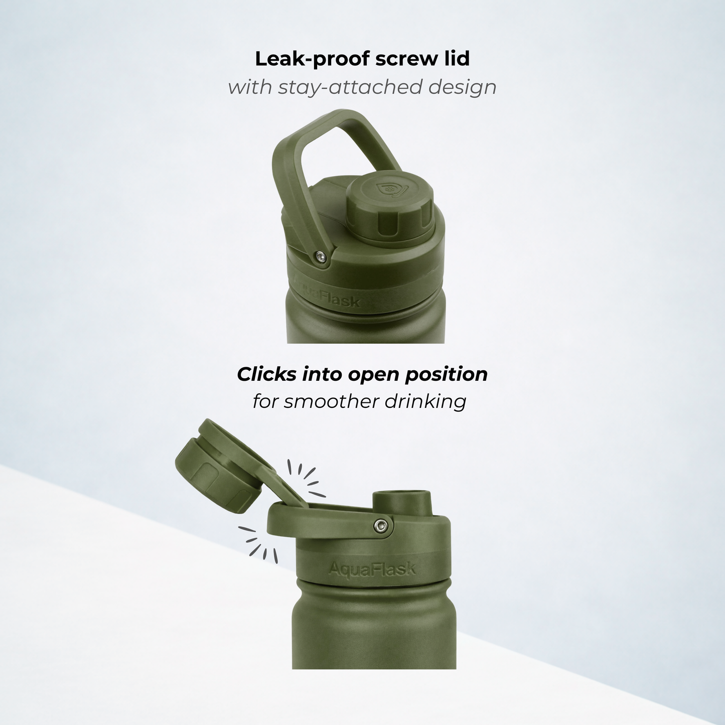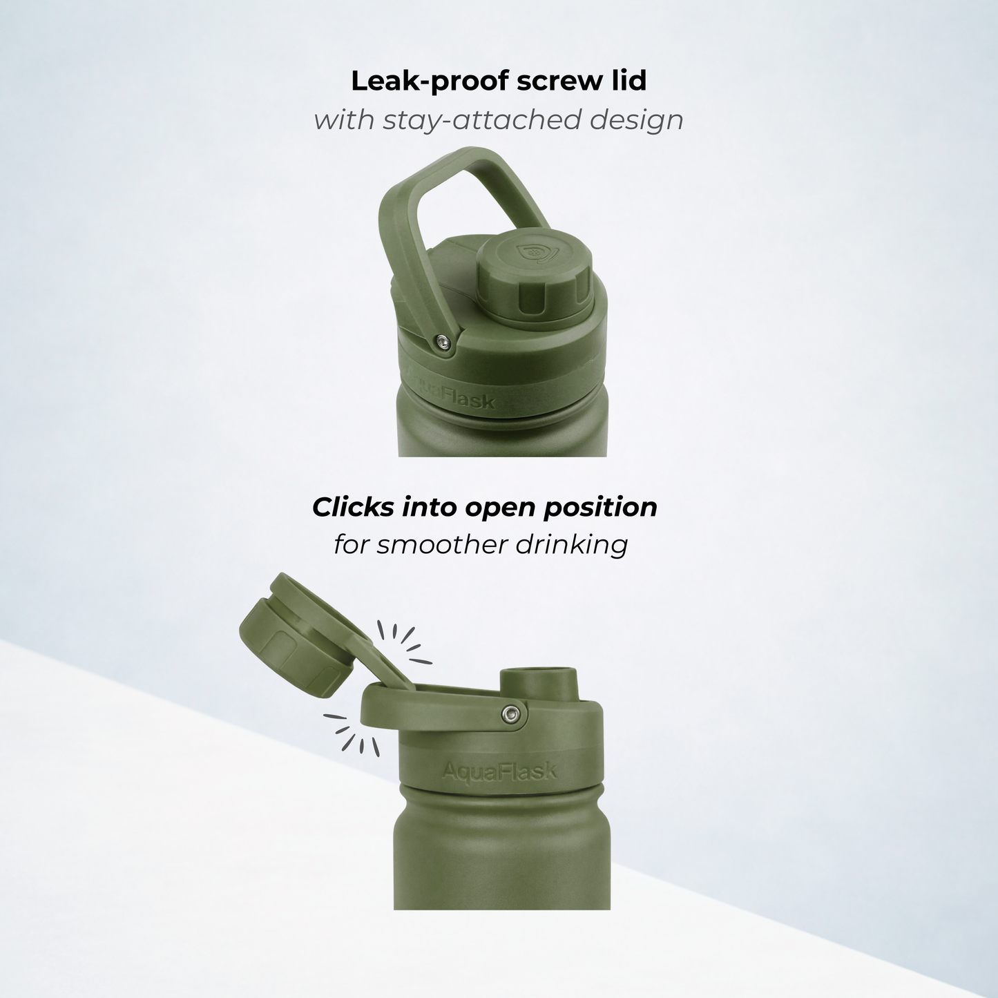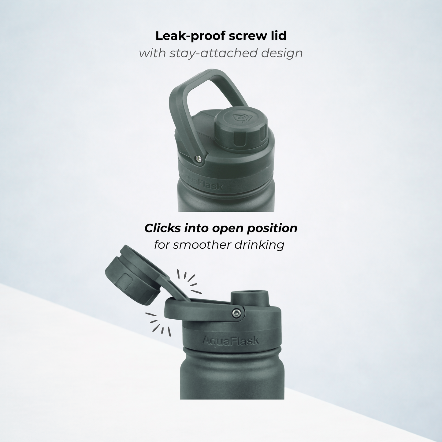 A bit of condensation around the lid is completely normal. It happens because the lid is made from thermoplastic, which isn’t insulated like the bottle itself. Don’t worry – it doesn’t affect the temperature of your drink whether it's hot or cold.